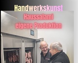 Vom Vater zum Sohn...  Das Rezept bleibt geheim! in unserem italienischen Reifeschrank werden unsere hausgemachten Salami bis zur Reife gehegt und gepflegt. Ein besonderer Genuss ist  unser Haussalami aus Illnau mit Sicherheitsgarantie: wunderbarer Genuss und vom "Schweizer Fleischfachverband" im 2025 prämiert!