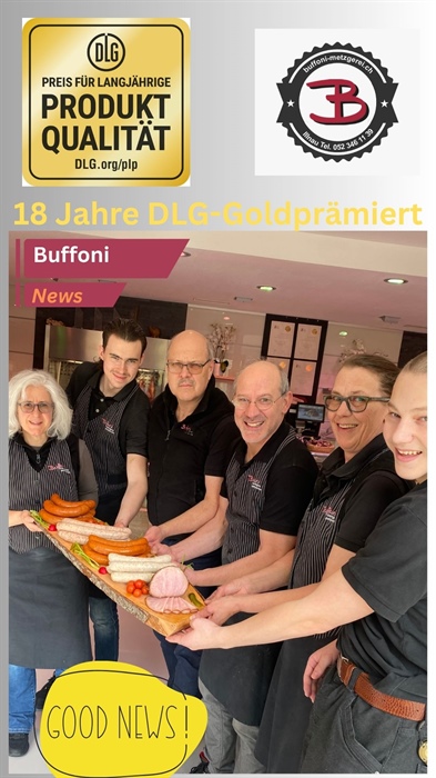 Bestnoten für die Metzgerei Buffoni AG:5x Maximalpunktzahl und Preis für langjährige Produktequalität zum 18. Mal!