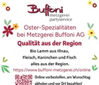 Die Metzgerei Buffoni AG hat für Ihre Kunden Fisch aus der Region organisiert. Dabei wird das Augenmerk auf Qualität aus der Region gelegt. Dies analog zu ihrem Fleischangebot, bei dem ebenfalls auf kurze Transportwege, Tierwohl und faire Beziehungen zu den Produzenten geachtet wird. Die Kunden können also sicher sein, dass sie an Ostern - und auch jederzeit - auf vollen Genuss beim Buffoni zählen können.