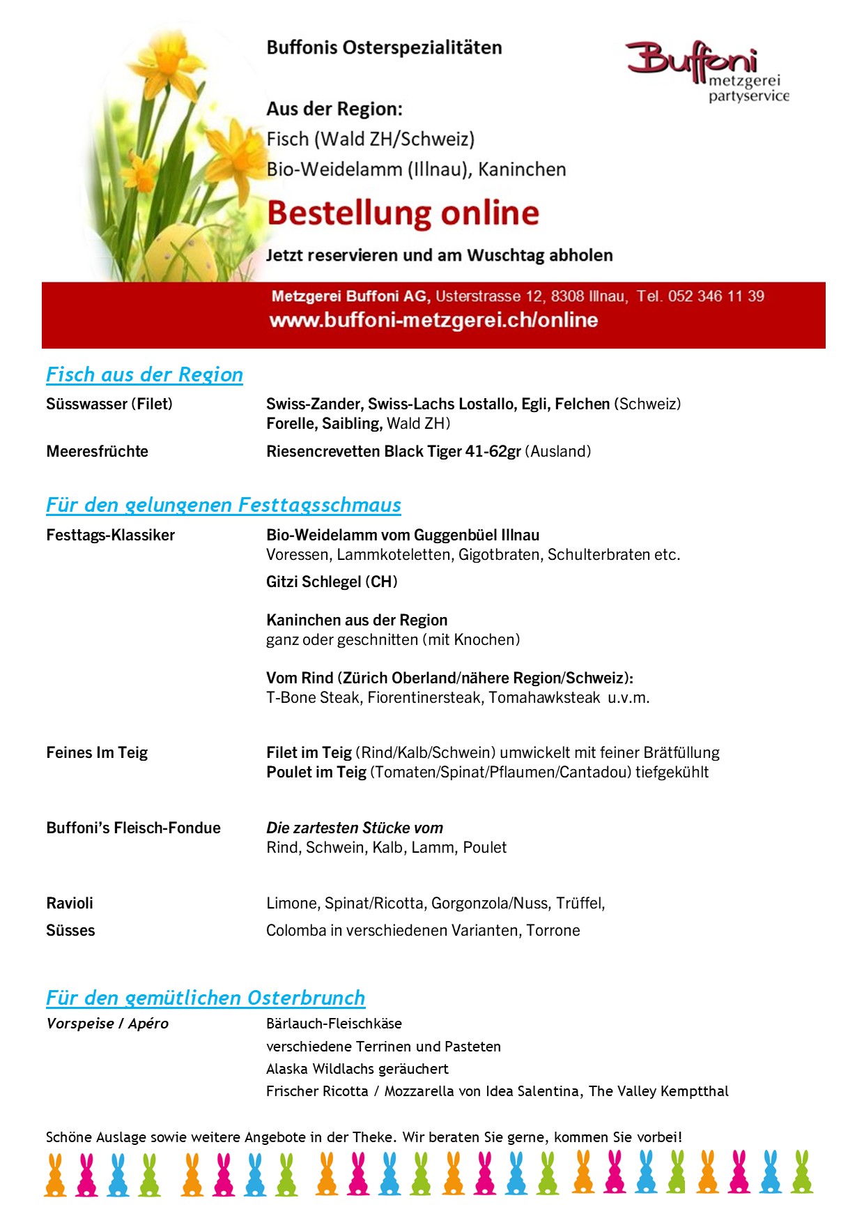 Reservieren Sie Ihre Oster-Spezialitäten bequem online auf der Webseite der Metzgerei